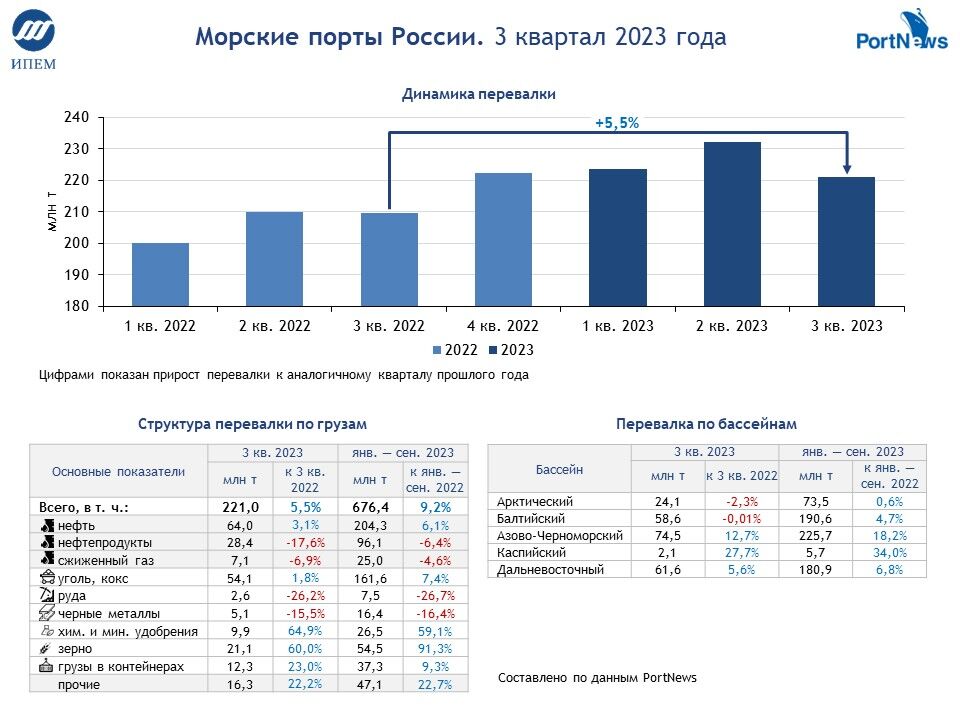 ロシアの独占問題研究所というところが、同国の港湾貨物量の動向を四半期ごとに発表しており、物流の実態を探る上で、便利である。今般、こちらのサイトで2023年第3四半期、1~9月期の数字が出たので、それを拝見してみることにしよう。